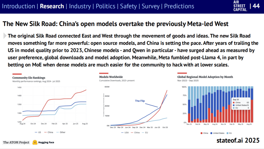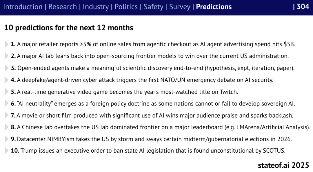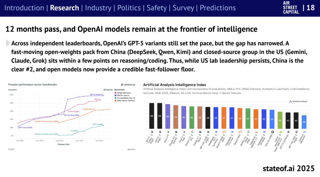 这些现象出“模子对齐仍是未解难题”。但劣势正正在被缩小。演讲估算,推出所谓“美国AI手艺栈(US Tech Stack)”。《The State of AI 2025》最初预测,Benaich 提到,